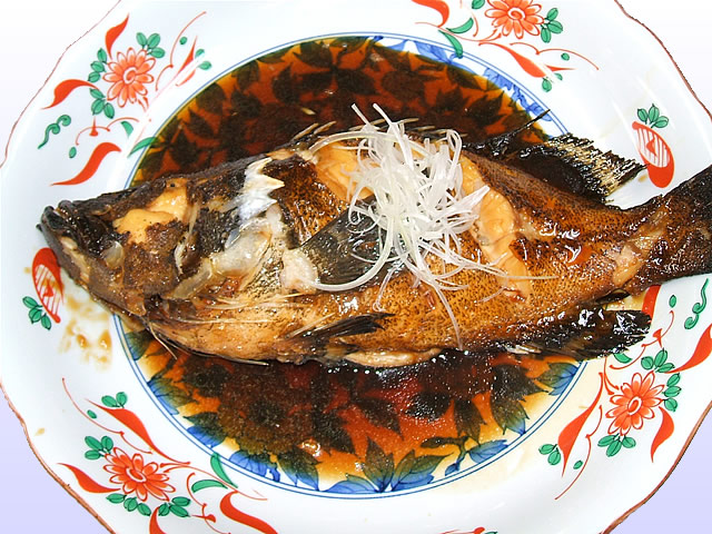 | クエの姿煮 (お持ち帰り可) ※1kgのクエを使っています。 |