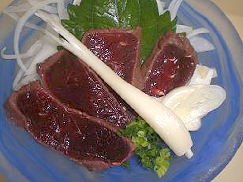 | 地魚焼き物 鰆(さわら) | 鯨のたたき | 遠州地鳥一黒シャモ (タタキ) |